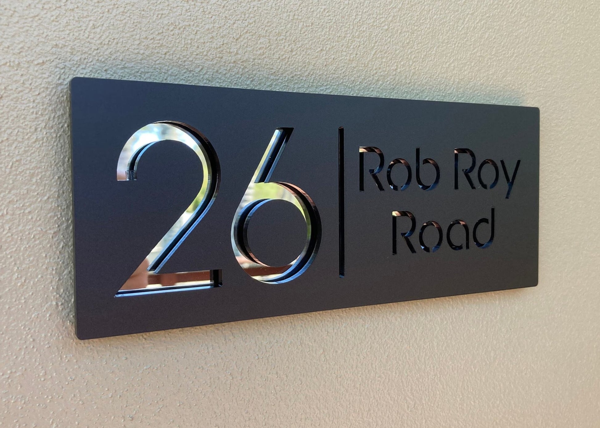 Add a a modern touch to your home with this custom acrylic address sign. Made from durable, weatherproof acrylic, it's perfect for beach houses, holiday homes, or any modern exterior.